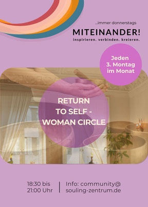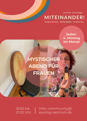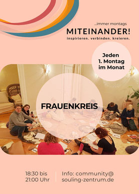 Jeden Montag im Monat gestalten wir verschiedene Community-Abende speziell für Frauen: Mit einem Frauenkreis, einem Kunstabend, Return to Self und einem Mystischen Abend.